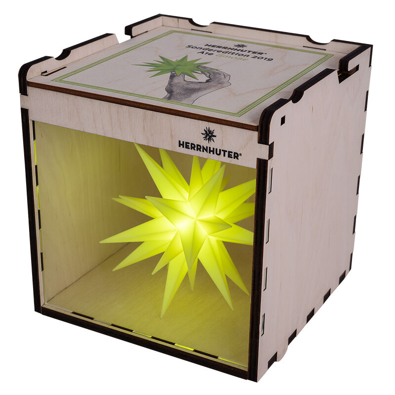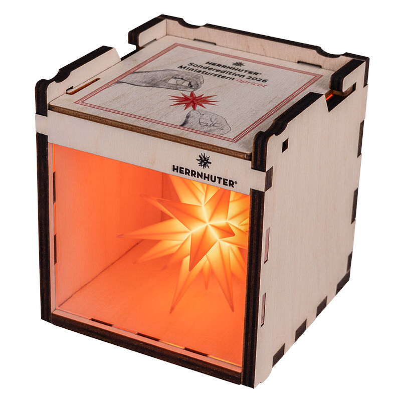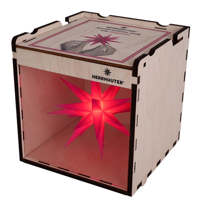 Weitere Neuheiten, welche dauerhaft im Sortiment aufgenommen werden, sind der Herrnhuter Miniaturstern in rot, sowie die passenden Präsentations- und Sammelboxen für die Sondereditionen A1e in magenta, limone und mint sowie für den Miniaturstern in apricot.