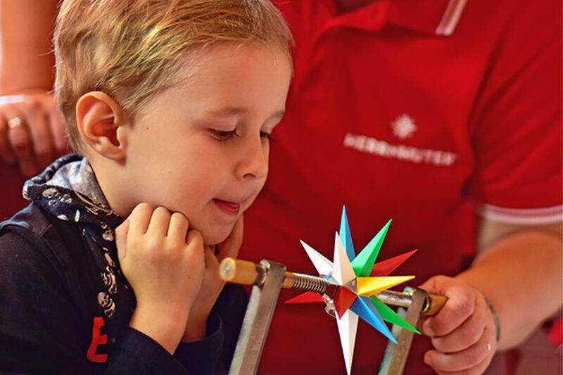 Im Jahr 2018 wurde die Manufaktur um die Herrnhuter Entdeckerwelt erweitert. Mit den beiden Herrnhuter Sternekindern Emmi & Jonas geht es hier für die kleinen Gäste spielerisch auf eine Reise durch die Welt der Sterne. Ob Klettern, Rutschen und Entdecken im Indoorspielplatz oder Gestalten und Fertigen von individuellen Herrnhuter Sternen in der Bastelwerkstatt - es gibt viel zu erleben.